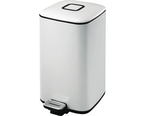 Vierkante pedaalemmer van gepoedercoat staal. Voorzien van kunststof binnenemmer, handgreep aan de achterzijde en geruisloos sluitend deksel met opvallend design.