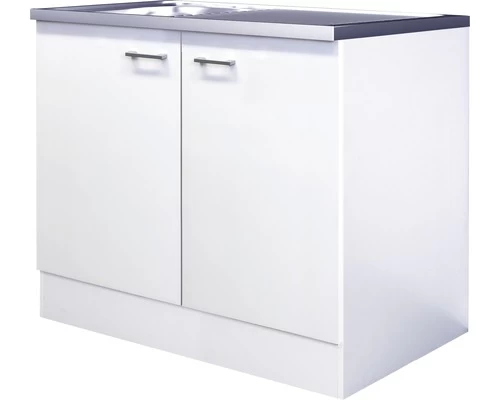 | Detailbeschrijving keukenmeubel | Spoelbak B 100 / H 85 / D 60 cm (afmeting incl. opbouwafmeting spoelbak) met 2 draaideuren zonder plank, opbouwspoelbak RVS, sifon en afvoerplug |